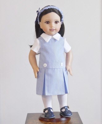 Dropped Waist Jumper American Girl Doll School Uniform in Pincord Blue with White Polo